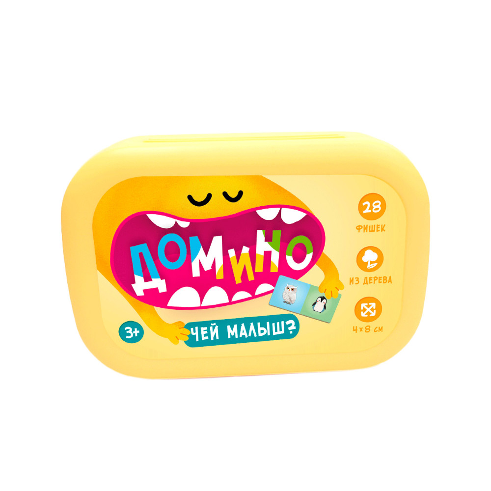 В комплекте домино – деревянные фишки. Нанесённые на фишки рисунки не сотрутся и будут долго радовать малыша, а упаковку из безопасного пищевого пластика можно использовать как ланч-бокс.
