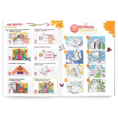 Раскраска-аппликация 3D. Для девочек. А4 16л.