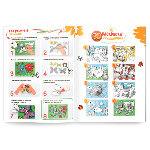 Раскраска-аппликация 3D. Животные. А4 16л.