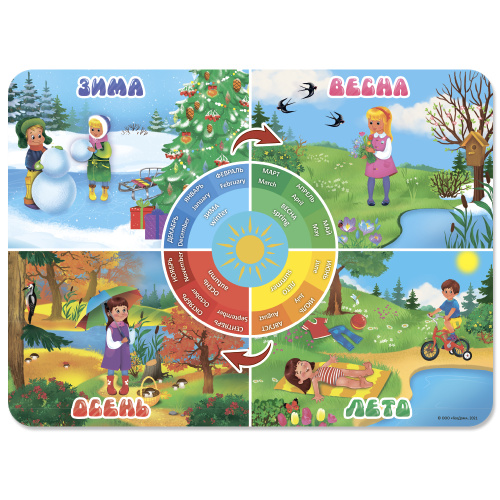 Настольное покрытие для лепки «Времена года» А3 формата с закругленными углами подойдёт для разных случаев жизни ребёнка. На нём удобно рисовать красками, лепить, играть, писать и даже кушать. Стол останется чистым, несмотря ни на что, а коврик легко моется. Покрытие адаптировано к компьютерной мышке. Теперь можно изучать времена года одновременно с лепкой и другими увлекательными занятиями на коврике. В линейки множество тематик под вкусы любого малыша.