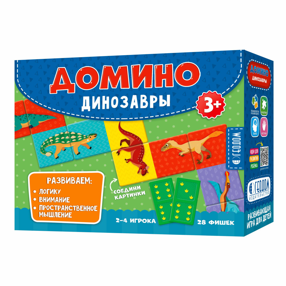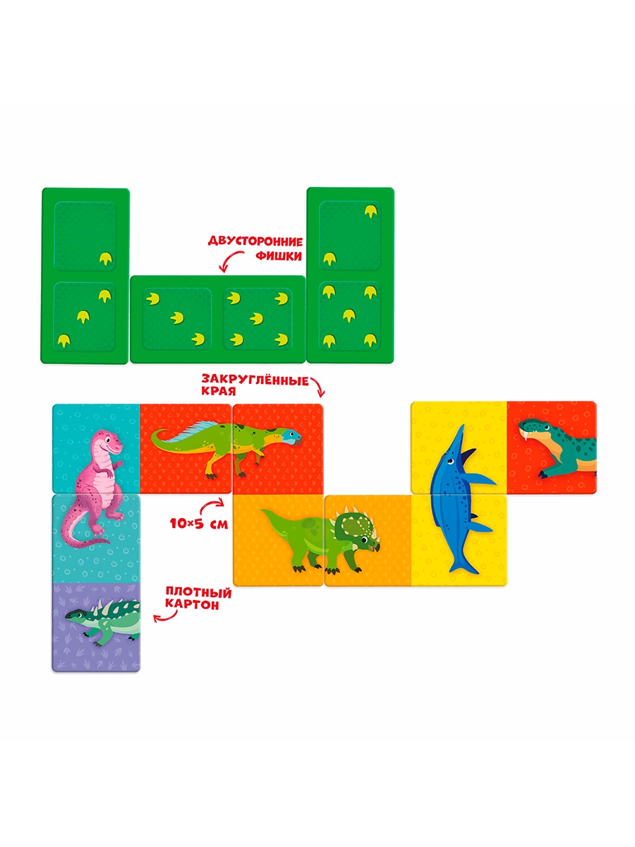 Детское домино на тему «Динозавры» расширяет кругозор и знакомит ребёнка с животными, развивая его память, внимательность, быстроту реакции и логическое мышление. Также во время игры малыш учится сравнивать и сопоставлять предметы.