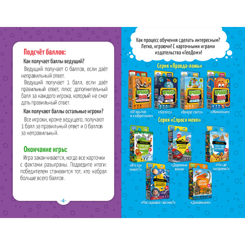 Эта карточная игра - находка для любознательных детей и их родителей! На карточках – 50 интересных фактов о теле человека и замечательные иллюстрации. Сможете ли вы разобраться, где правда, а где ложь? Играйте – будет интересно!