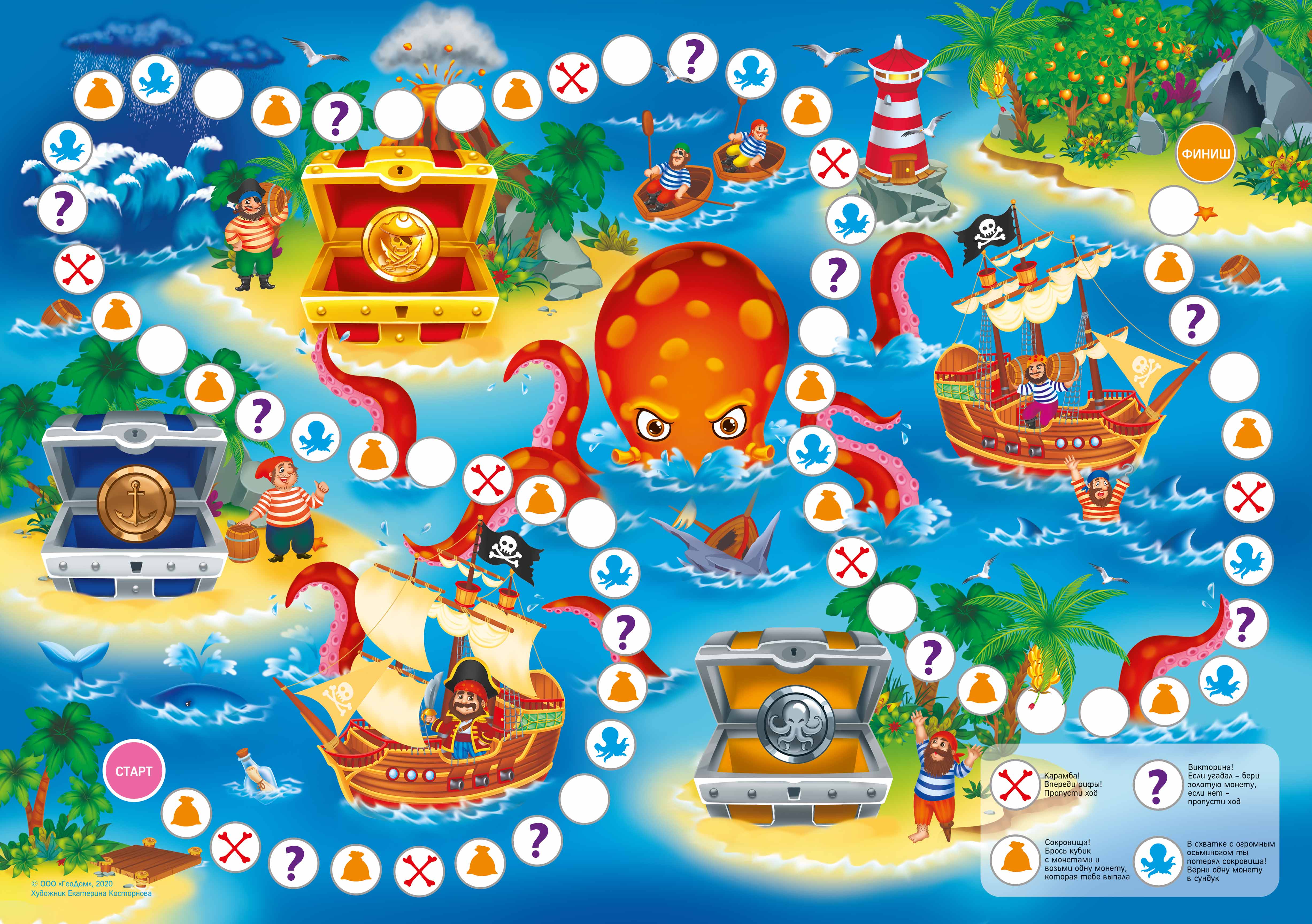 Игра-ходилка с викториной. Золото пиратов. 42х29,7 см.