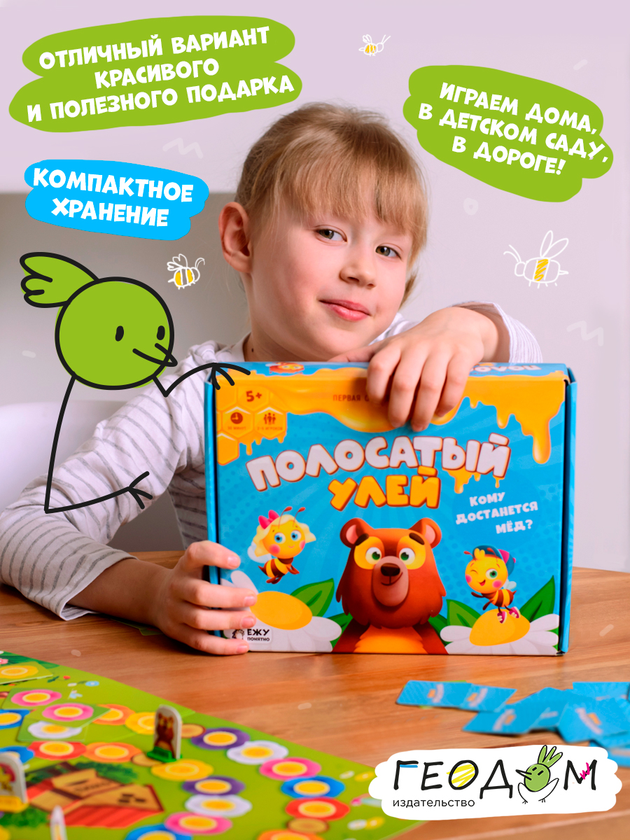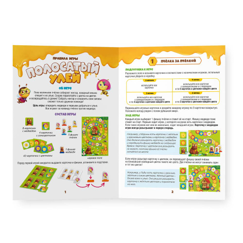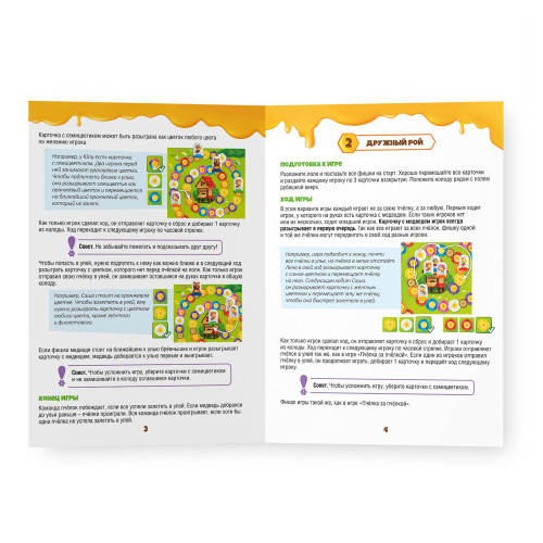 Хитрый мишка спешит к улью, чтобы съесть весь мёд – пчёлкам надо торопиться! Перелетайте с цветка на цветок, чтобы опередить воришку и спасти медовые запасы. Объединяйтесь и действуйте в команде, используйте логику и правильную стратегию – и вперёд к улью! «Пчёлка за пчёлкой» или «Дружный рой»? Выбирайте любой из вариантов игры! Настольная игра тренирует внимание, учит действовать в команде, развивает стратегическое мышление и социальный интеллект. Количество игроков: 2–5. Рекомендованный возраст: 5+.