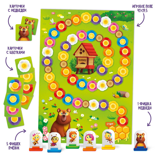 * 6 фишек игровых персонажей + подставки (5 пчелок+1 медведь)
