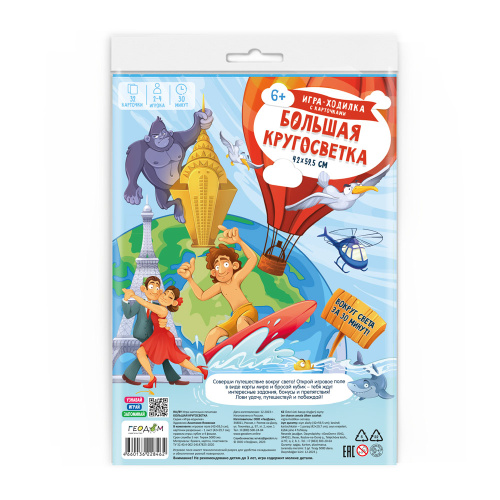 Соверши путешествие вокруг света! Открой игровое поле в виде карты мира с красочными иллюстрациями и бросай кубик - тебя ждут интересные задания, бонусы и препятствия! В ходе игры ты узнаешь о культуре, традициях, природе и животном мире разных уголков планеты. Игра развивает кругозор, любознательность, логическое мышление и память.