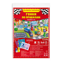 "Гонки по правилам" не просто настольная игра-ходилка — это настоящее приключение, в котором дети изучают правила дорожного движения. Для того, чтобы начать игру и выехать в город нужно сдать на права, а для этого игрокам предстоит ответить на несложные вопросы викторины. Только после этого участникам вручаются права и они могут выезжать в город.