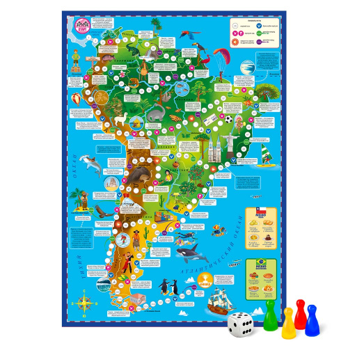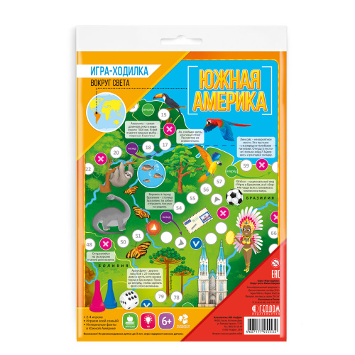 Игра-ходилка с фишками. Вокруг света. Южная Америка. 59,5х42 см.