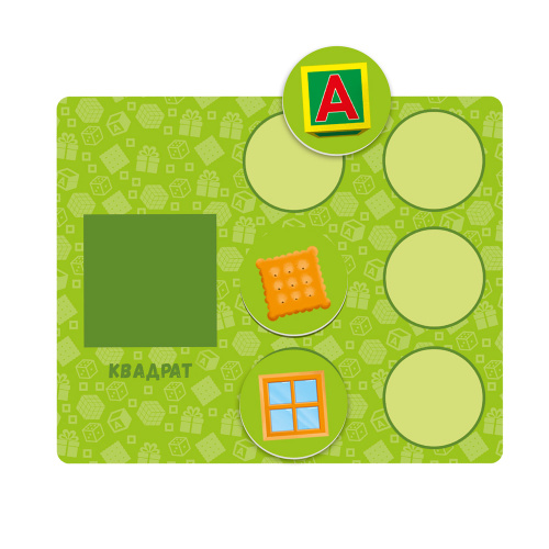 Раздайте карточки всем игрокам. Фишки сложите в коробку или мешочек, перемешайте их. Ведущий достаёт по одной фишке, называет предмет, не озвучивая его форму, и показывает фишку всем игрокам. Игроки сопоставляют предмет с формой на своей карточке. На чьей карточке находится соответствующая картинка, тот и забирает фишку и накрывает предмет в карточке. Выигрывает тот, кто первым закроет фишками свои карточки. Игра заканчивается, когда останется один игрок.