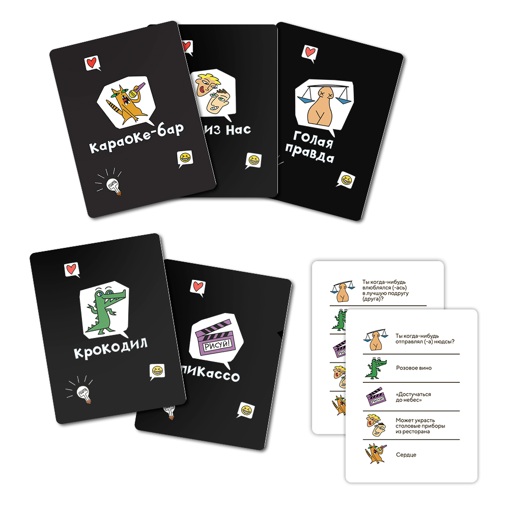 5 типов заданий, 350 вопросов и вызовов! От "Голой правды" до караоке-бара — каждый раунд игры будет непредсказуемым.