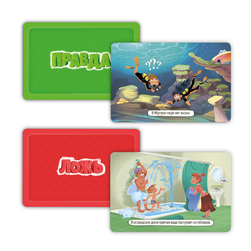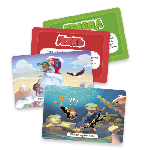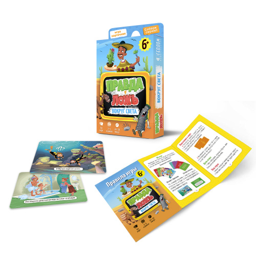"Вокруг света"- популярная тематика серии карточных игр "Правда-ложь"! Супер-интересные факты о разных странах, их особенностях и жителях, красочно изображенные на карточках, расширят кругозор ребенка в игровой форме! Игрокам предстоит разобраться, что из них правда, а что- ложь! 50 карточек с ярчайшими фактами и 10 карточек игроков не оставят равнодушными ни детей, ни взрослых.