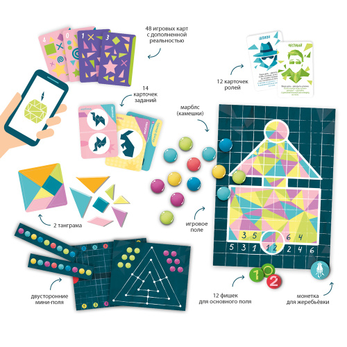 Большая игра на выживание – это 5 раундов для самых азартных и 17 игр на выбор в одной коробке! Откройте «Охоту на кальмара» – и сделайте свой выбор! Вас ждут испытания на сообразительность, скорость, внимание, азарт и везение – командные и личные, сложные и лёгкие. Побеждайте, двигайтесь вперёд и срывайте маски с соперников – чтобы стать лучшим охотником на кальмара! Внутри – большое игровое поле и двусторонние мини-поля, игровые карты с дополненной реальностью, карточки заданий и карточки ролей, игровая монетка, камешки-марблс и фишки. Количество игроков: 2–12. Рекомендованный возраст: 14+.