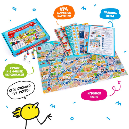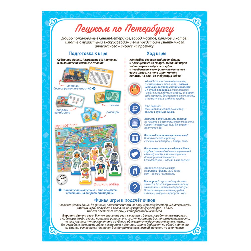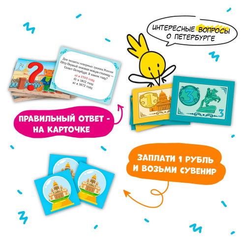 Добро пожаловать в Санкт-Петербург – город мостов и каналов! Вместе с пушистыми знатоками города – милыми котами и кошками – вам предстоит прогуляться по Северной столице! Правильные ответы на вопросы викторины помогут приобрести билеты в музеи и театры, а ваши провожатые – городские котики – с удовольствием покажут свои любимые места Петербурга. В этой игре победит не тот, кто быстрее окажется на финише, а тот, кто посетит больше интересных мест в прославленном городе на Неве.