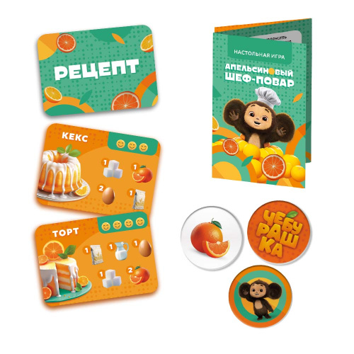 Самая вкусная игра из нулевых на выбивание фишек с забавным Чебурашкой! Стань поваром, приготовь апельсиновые сладости и накорми Чебурашку в настольной игре с фишками «Чебурашка. Апельсиновый шеф-повар». Бросай фишки с ингредиентами об стол, готовь по оригинальным рецептам – и собери как можно больше улыбок, чтобы победить. В комплекте: 40 фишек из плотного картона, 12 карточек, правила игры. Рекомендованный возраст: 5+.