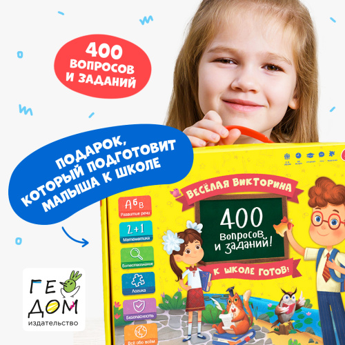 Игра настольная в чемоданчике 32х24х5. К ШКОЛЕ ГОТОВ! 400 вопросов и заданий. Весёлая викторина.