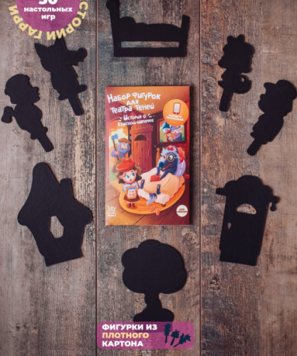 Набор фигурок "Красная Шапочка" к детской развивающей настольной игре "Театр теней Истории Гарри". В игровой набор входит 8 фигурок, среди них 4 фигурок персонажей и 4 декорации. Чтобы начать представление, необходимо выключить свет и открыть приложение Истории Гарри. Набор фигурок примечателен тем, что его можно использовать не только на столе, но и на стене. Театр теней способствует развитию актерского мастерства, воображения, мелкой моторики рук, грамотной речи, и образного мышления. Внимание! Данный набор не включает ширму и подставку для телефона!