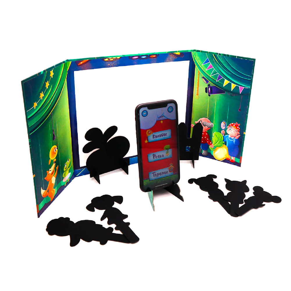 В игровом наборе вы найдёте: 25 фигурок для трёх русских народных сказок «Репка», «Колобок», «Теремок», а также удобную подставку под телефон, билеты в театр, ширму размером 23.5 сантиметра и необходимые советы, и правила.