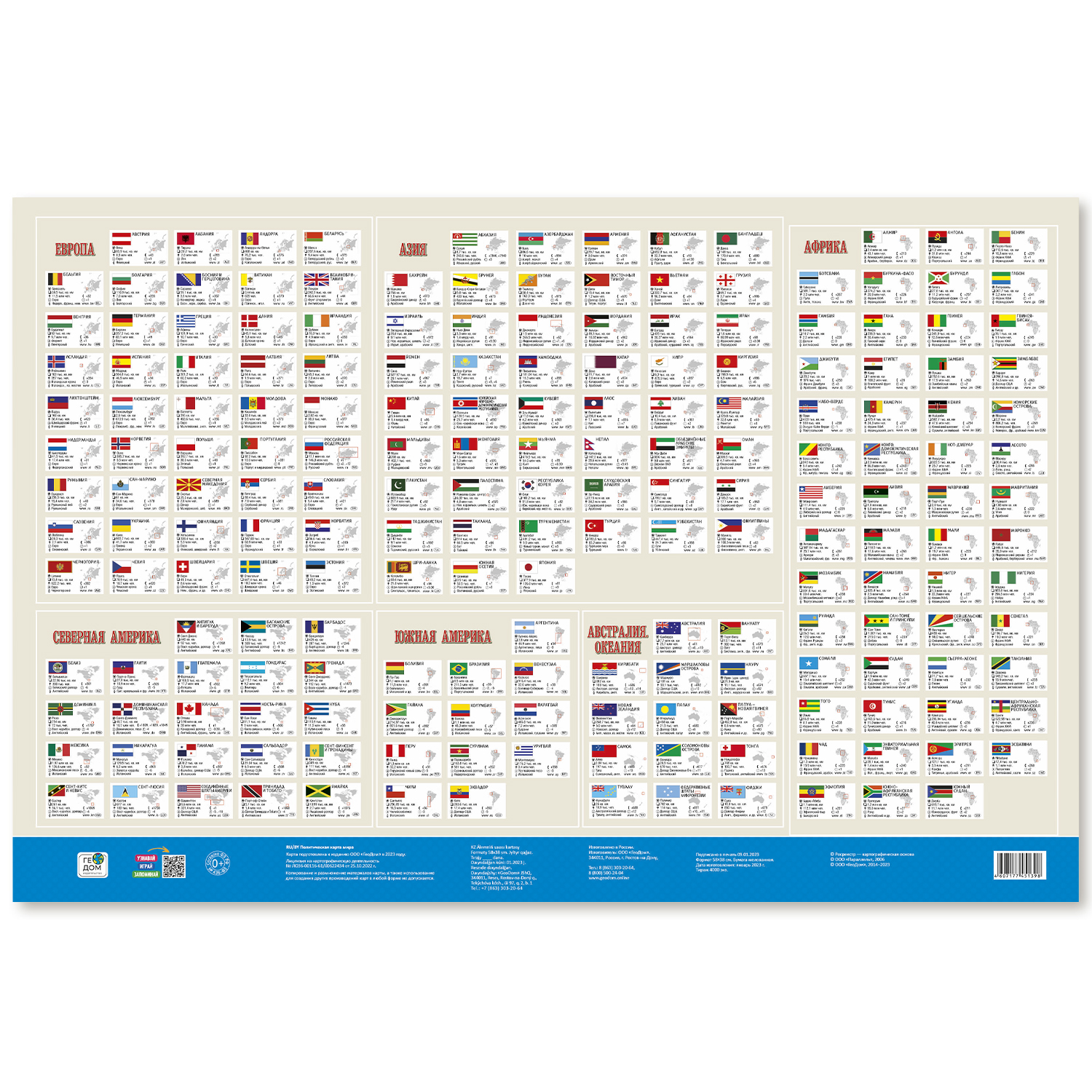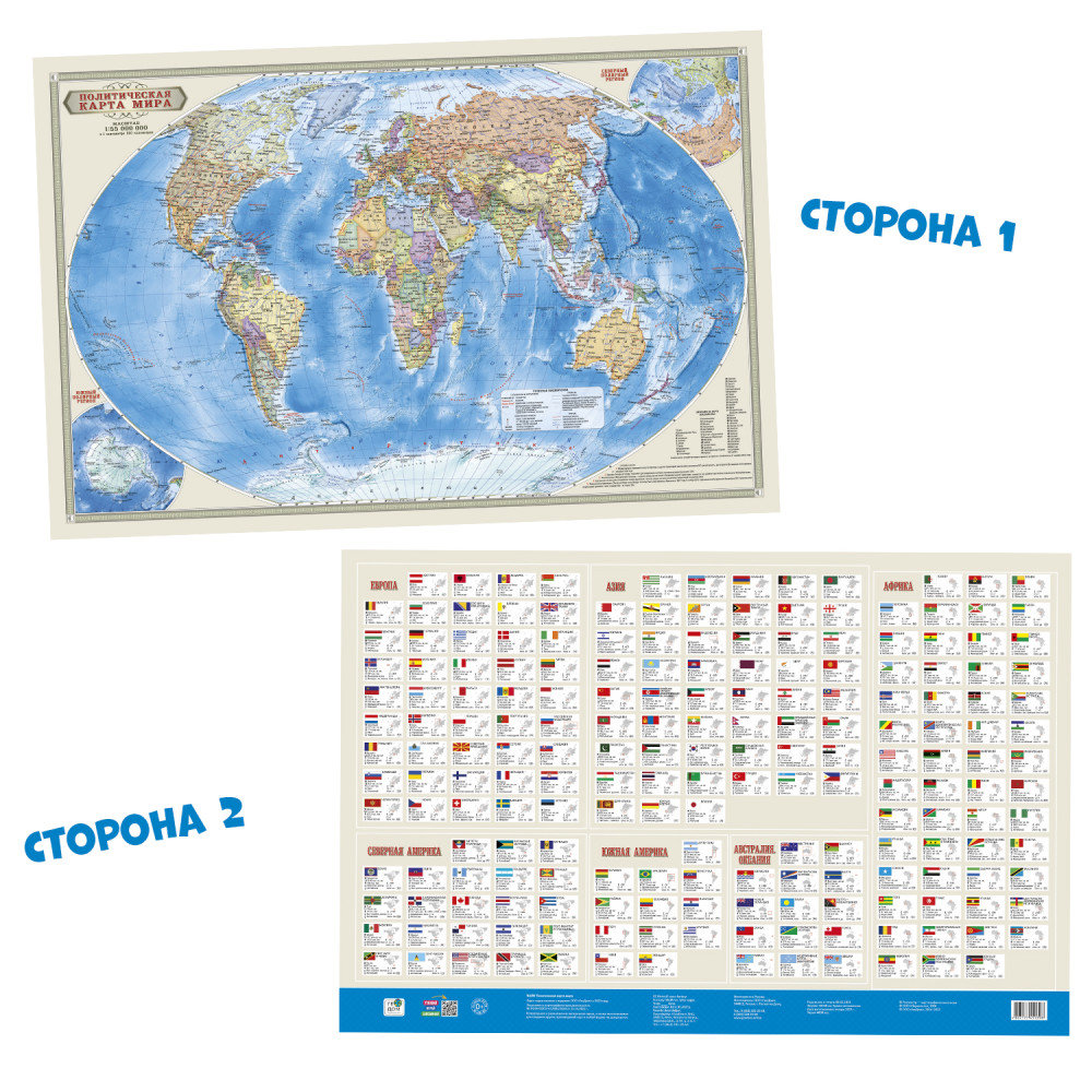 Карта МИР полит. с инфографикой, 58х38 см, 1:55 млн, ДВУХСТОР. с европодвесом