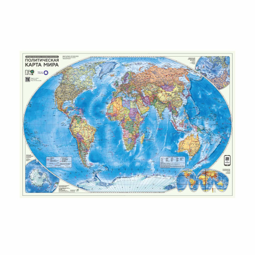 Пора изучать географию на 5+! «ПРОкарта» – новая линейка интерактивных карт с голосовым помощником и отличный тренажер для изучения географии. Найди на карте QR-код и смотри видео "Простой способ понять карту". Запусти навык "ПРОкарта. Мир политический" и используй один из 3 режимов или сразу все! Голосовой помощник поможет узнать новое, будет задавать вопросы, давать подсказки и попросит найти объекты на карте! С навыком легко изучить и запомнить политическую карту мира. Карта подробно отражает современное политико-административное устройство мира и границы государств. Населённые пункты отображены по числу жителей и административному значению, показаны основные наземные пути сообщения и судоходные каналы.
