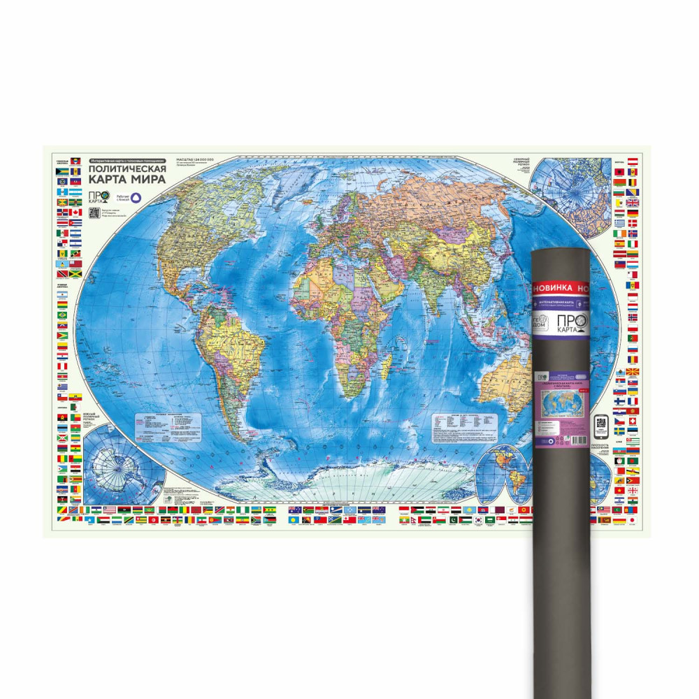 ПРОкарта интерактивная МИР полит. с флагами, 124х80 см, 1:24 млн, в тубусе