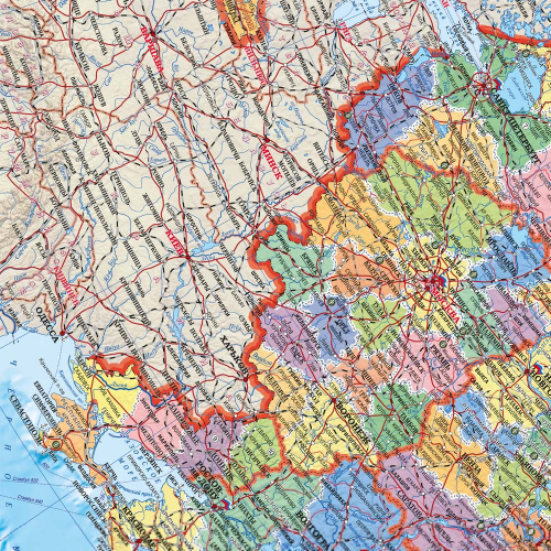 ПРОкарта интерактивная РОССИЯ П/А, 124х80 см, 1:6,7 млн, ЛАМ. на рейках с европодвесом