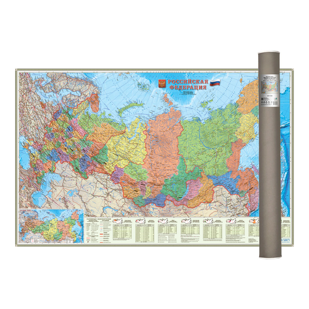 Карта 124х80 см. Российская Федерация П/А Субъекты федерации. Настенная в тубусе. М1:6,7 млн. ГЕОДОМ