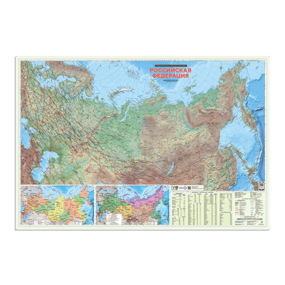 ПРОкарта интерактивная РОССИЯ физич., 157х107 см, 1:5,2 млн, ЛАМ. с европодвесом