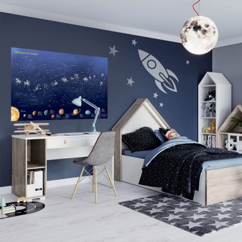 Карта ЗВЕЗДНОЕ НЕБО/Планеты. Созвездия (светящаяся в темноте), 90х60 см, ЛАМ. с европодвесом