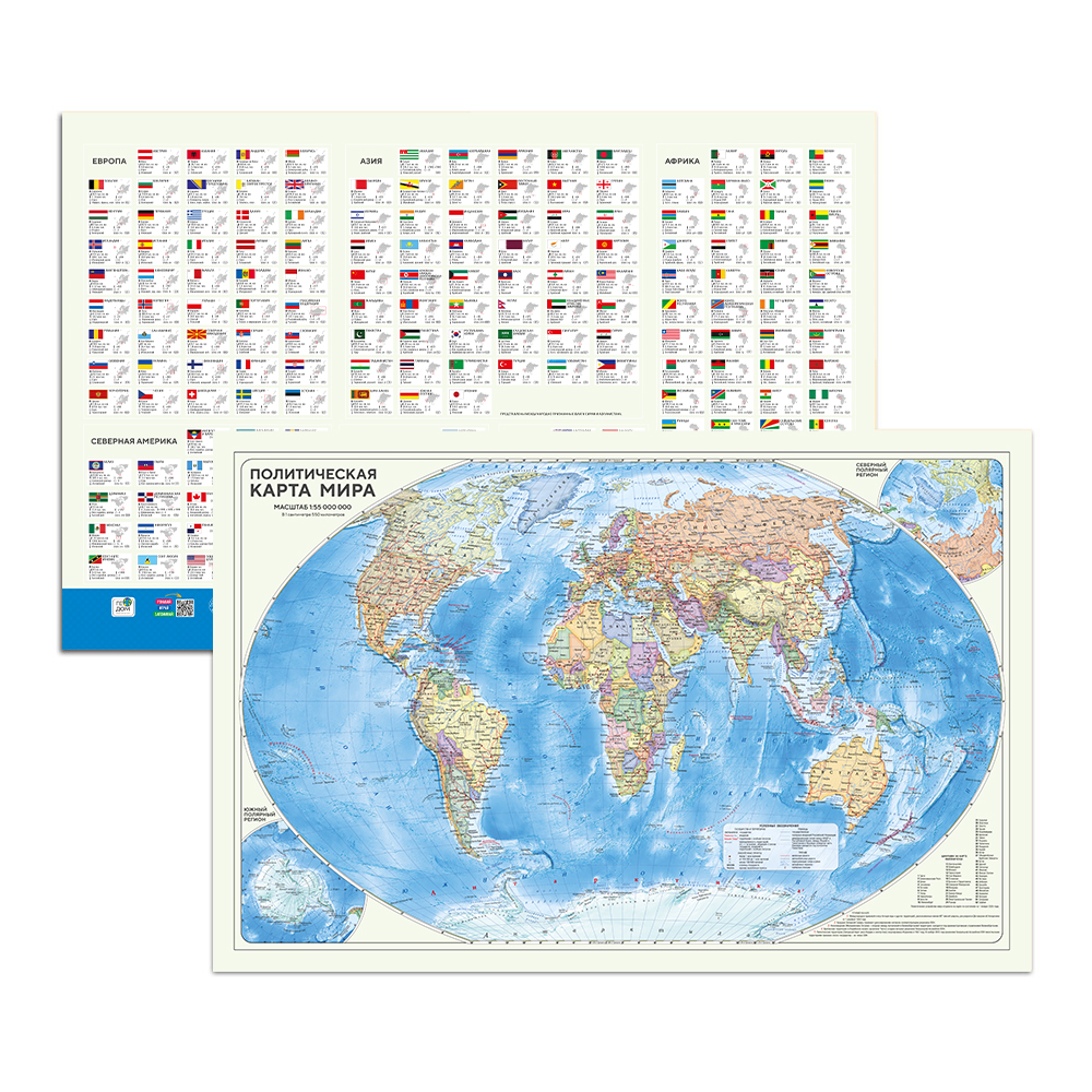 Карта МИР полит. с инфографикой, 58х38 см, ДВУХСТОР. настольная КАПС. ЛАМ.