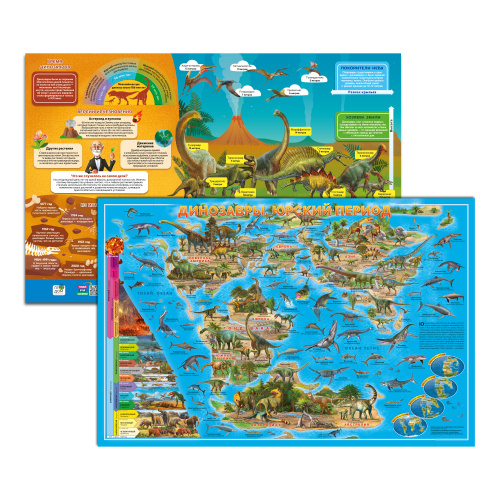 На оборотной стороне карты присутствует инфографика о том в когда и где на земле обитали динозавры, что привело к их исчезновению и ещё много полезной и интересной информации.