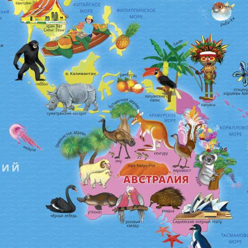 С большой настенной картой "Мой мир" от издательства "ГЕОДОМ" ребенок познакомится с миром вокруг, расширит кругозор. На карте изображены материки и океаны, животные и растения, а также достопримечательности со всех уголков нашей планеты. Формат карты очень удобный, позволяет рассмотреть все детали. Карта станет замечательным украшением детской комнаты.