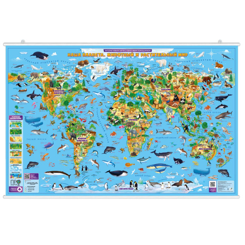 ПРОкарта интерактивная Животный и растительный МИР, 124х80 см, на рейках с европодвесом