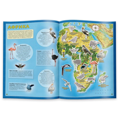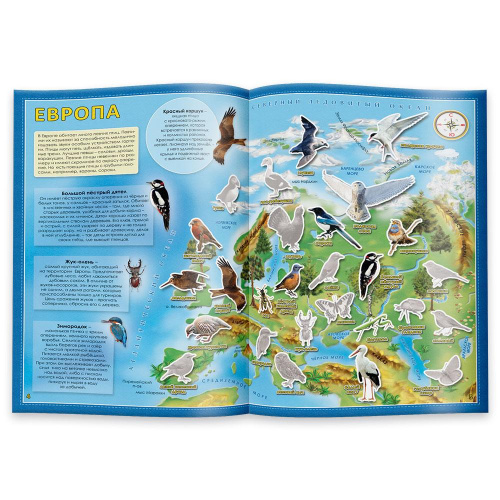 Этот выпуск детского атласа с наклейками посвящен птицам и насекомым. Перелистывая страницы, ребенок узнает много интересного о пернатых обитателях всех континентов, а насекомые поразят своими удивительными способностями. Самые редкие и привычные нам птицы расположились на страницах среди красивых бабочек, пчёл и жуков.