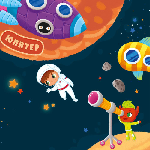 Здесь планеты солнечной системы видны, как на ладони. Под красочными иллюстрациями детки найдут занимательные факты и узнают, какая планета является самой горячей, а какая самой холодной, а также рассмотрят загадочные кольца Сатурна. А сколько весёлых инопланетных друзей, космических кораблей, звёздочек и космонавтов можно найти среди наклеек!