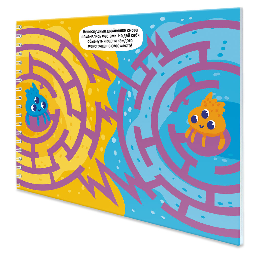 Перед вами красочная и весёлая книжка на пружинке с классными лабиринтами, которые так любят детки.