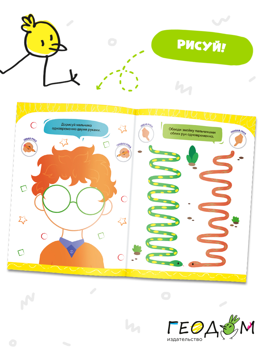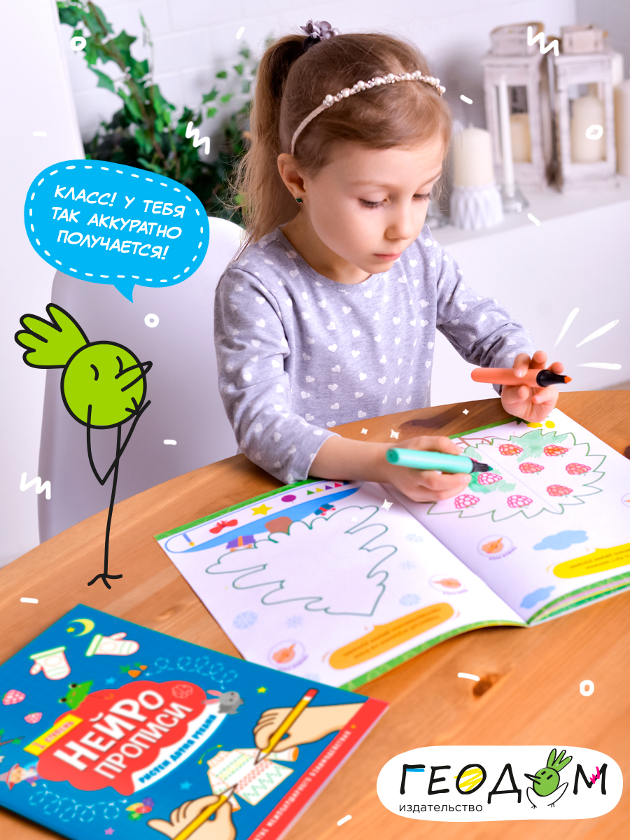 Серия «Нейропрописи» – это две ступени увлекательных заданий для развития межполушарного взаимодействия. Рисование двумя руками – по очереди и одновременно – не так трудно, как кажется: задания даны по принципу от простого к сложному. Сначала рисуем пальчиками, только потом карандашами. Выполнение несложных упражнений помогает развивать мышление и речь, координацию и моторику. Обводи, раскрашивай, рисуй – это весело и интересно! Рекомендованный возраст: 6+.