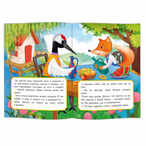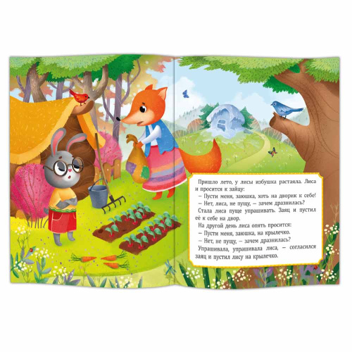 Мудрые и поучительные народные сказки «Лиса и журавль» и «Заюшкина избушка» в изложении писателей А.Н. Толстого и О.И. Капицы. Сказки рассказывают о дружбе и о взаимовыручке, учат тому, что не надо жадничать.