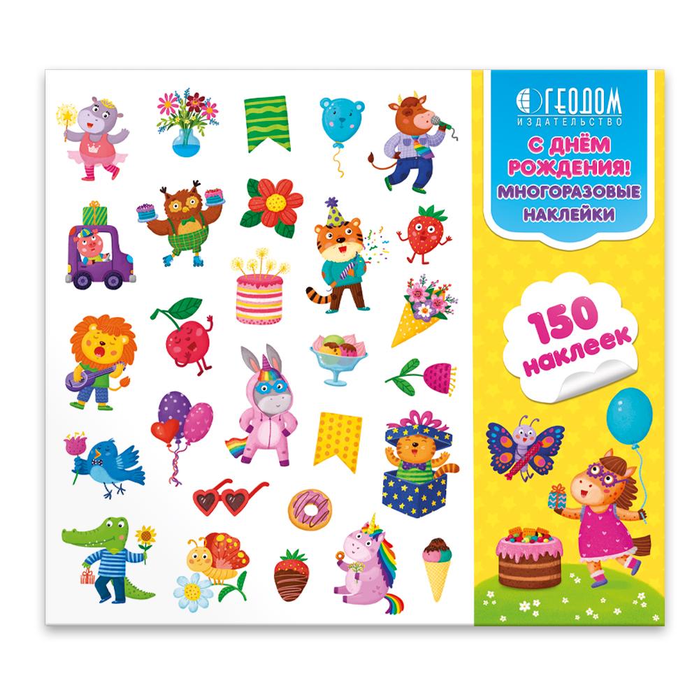 Многоразовые наклейки в папке. С Днём Рождения! 150 шт. 23,5х21,5 см.