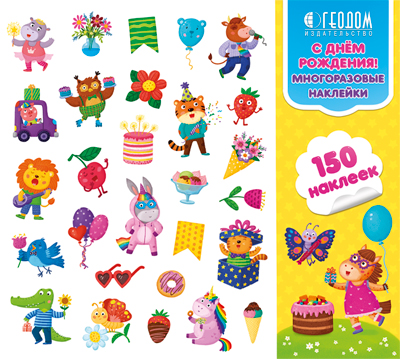 Набор из 150 ярких многоразовых наклеек на любимую всему тематику — «День рождения» упакован в удобную папку, что позволяет не расставаться с ними и брать с собой куда угодно: к бабушке, в садик, в самолёт и в гости.