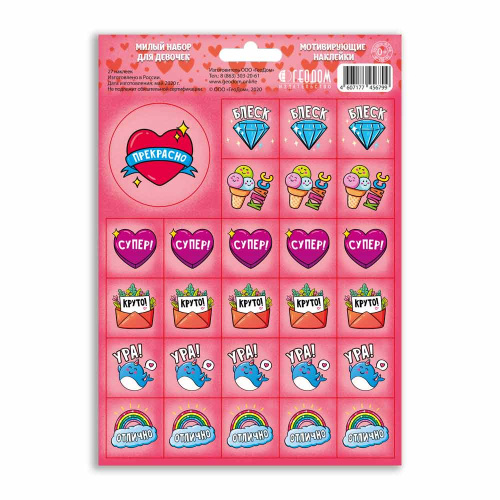 Наклейки мотивирующие. Милый набор для девочек. 27 штук. 14,8х21 см. ГЕОДОМ