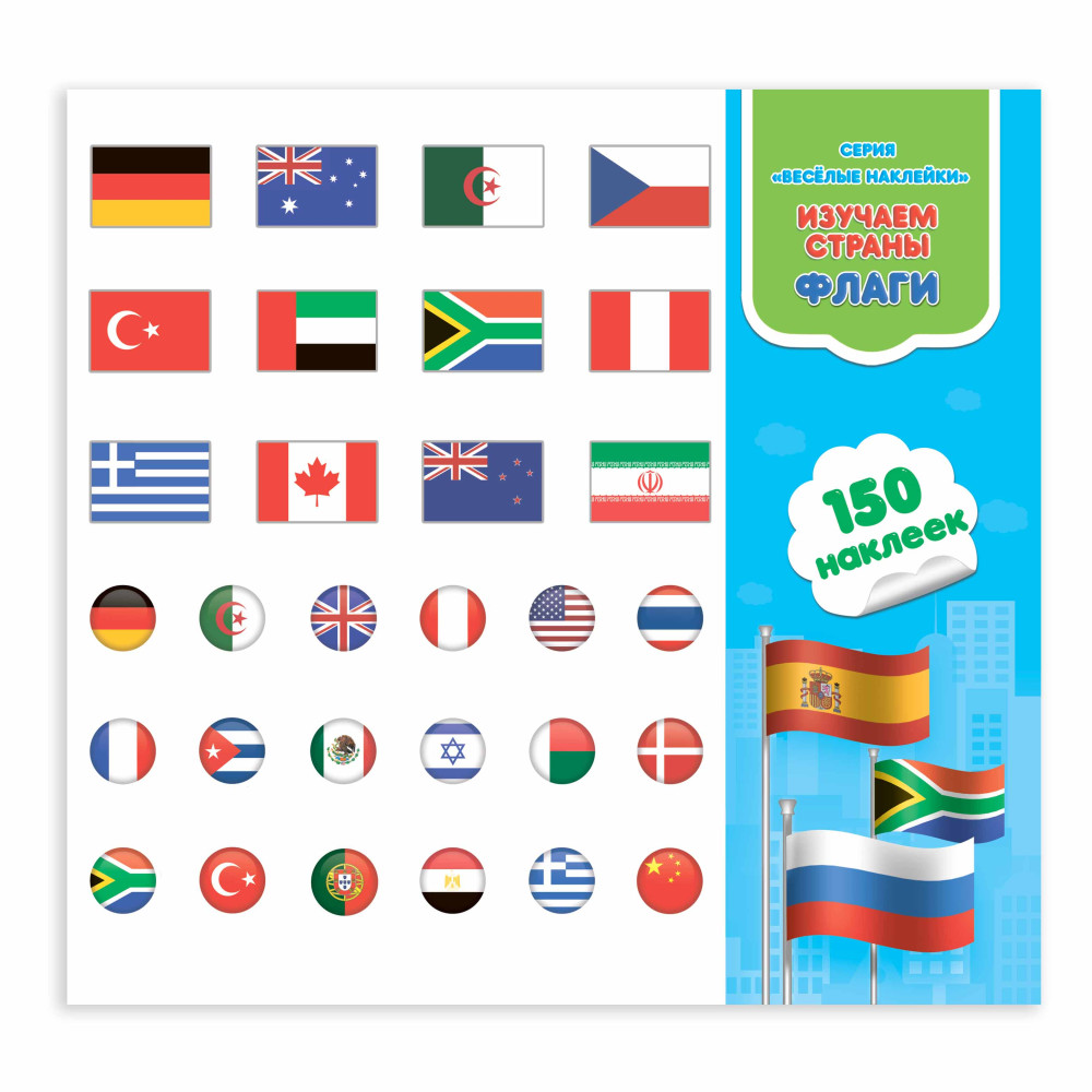Весёлые наклейки. Изучаем страны. Флаги. 150шт. 22,7*20,8 см.