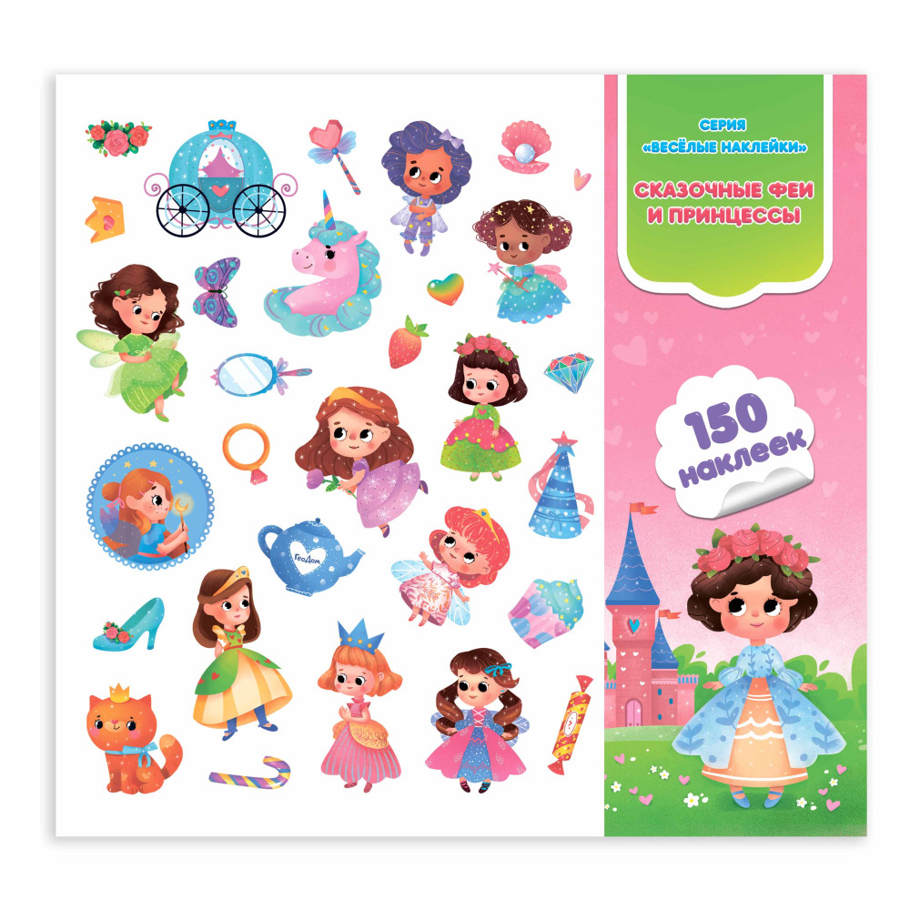 Весёлые наклейки. Сказочные феи и принцессы. 150шт. 22,7х20,8 см.