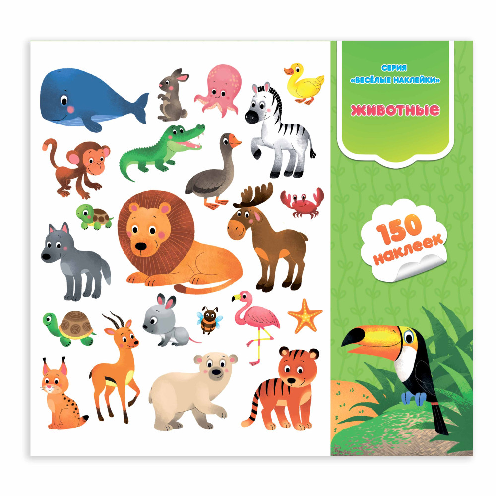Весёлые наклейки. Животные. 150шт. 22,7х20,8 см. ГЕОДОМ