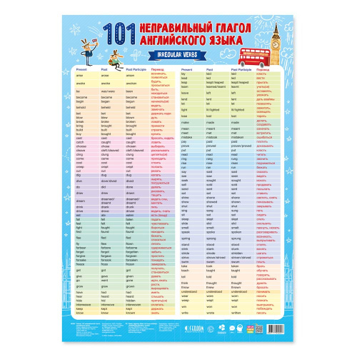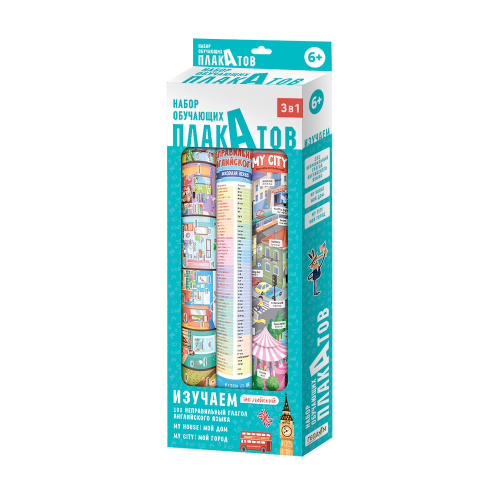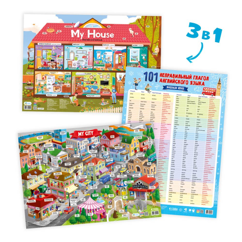 Изучать английский язык – легко и интересно с новым набором обучающих плакатов 3 в 1! Разместите на видном месте плакат «101 неправильный глагол английского языка», используйте яркие плакаты «My house/Мой дом» и «My city/Мой город», чтобы хорошо запомнить новые слова по этим темам. Рассматривать – интересно, запоминать – легко! Рекомендованный возраст: 6+