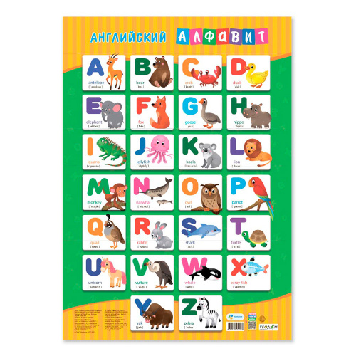Яркие цвета, чёткий контур, забавные животные - всё это плакат для изучения букв английского алфавита.