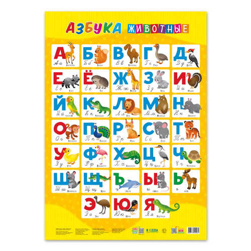Яркий плакат с забавными и самыми разными животными для изучения букв русского алфавита обязательно понравится малышам.