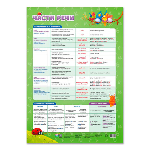 Красочный обучающий плакат “Части речи” - незаменимый помощник для детей начальной школы!