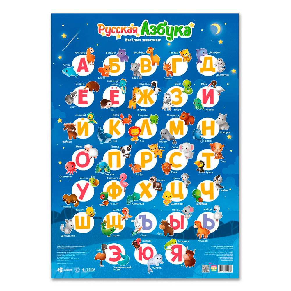 Плакат дидактический. Русская азбука. Весёлые животные. А2