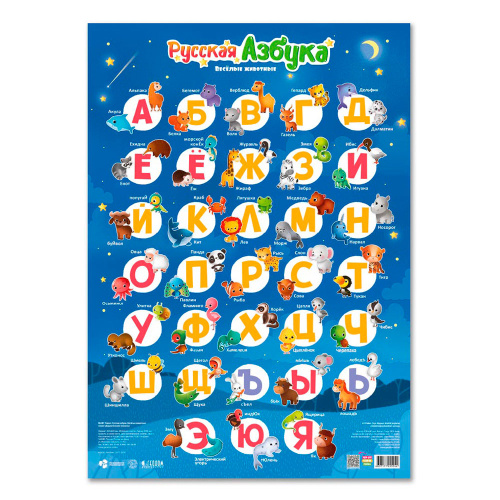 Яркий плакат с любимыми животными для изучения букв русского алфавита обязательно понравится малышам.