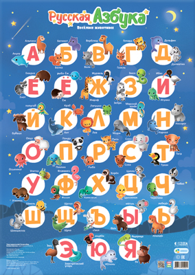 Яркий плакат с любимыми животными для изучения букв русского алфавита обязательно понравится малышам.